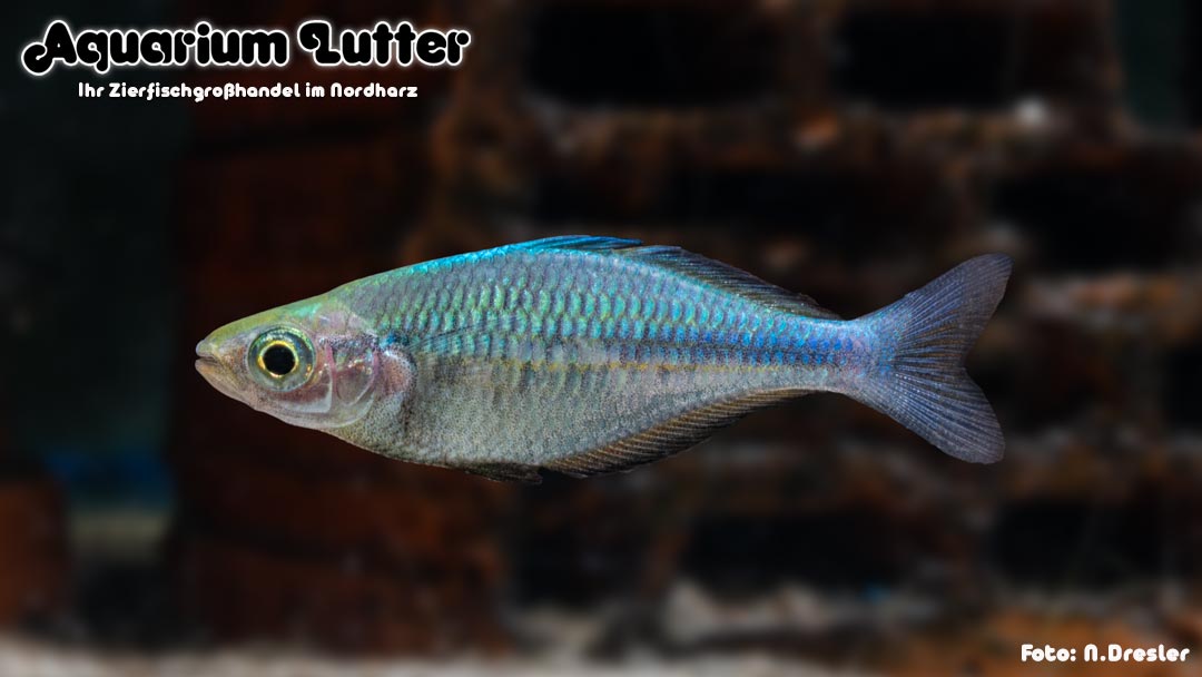 Der Blaue Regenbogenfisch (Melanotaenia lacustris), auch bekannt als Lacustris Regenbogenfisch, ist ein beeindruckender Süßwasserzierfisch aus der Familie der Melanotaeniidae. Diese Art stammt aus Neuguinea, wo sie in den klaren Seen und langsam fließenden Flüssen der Region rund um den Kutubu-See beheimatet ist. Der Blaue Regenbogenfisch ist besonders für seine leuchtend blaue Färbung bekannt, die ihn zu einem beliebten Bewohner in vielen Aquarien macht.